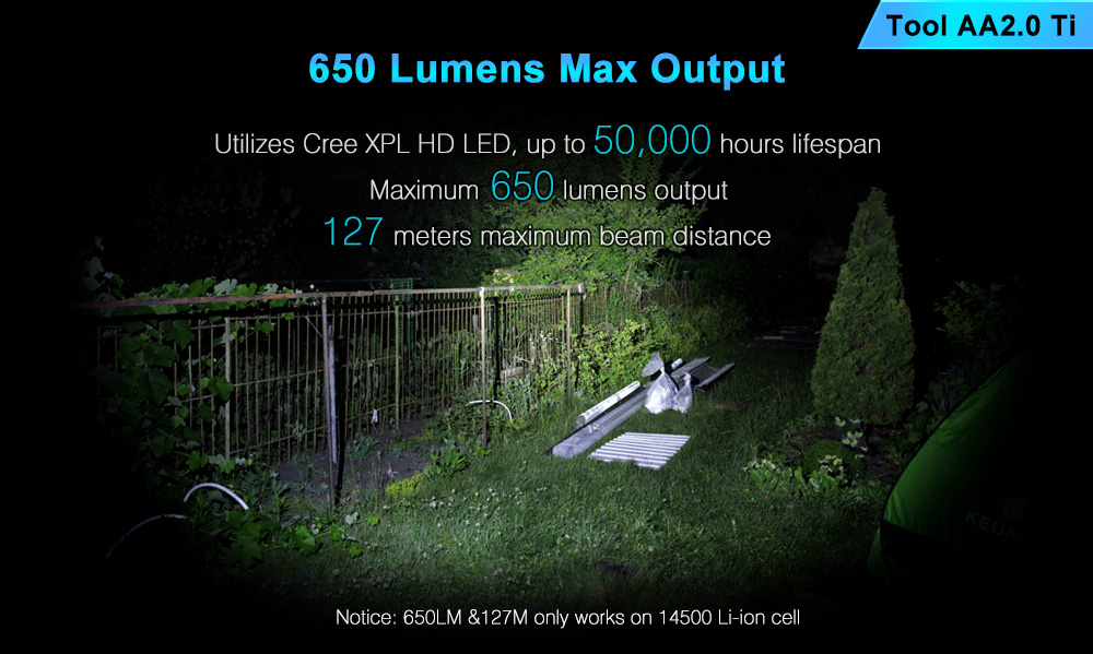 Notice : The included 14500 battery in the options is the 3.7v/920mAh Lumintop 14500 battery with a built-in charging port.