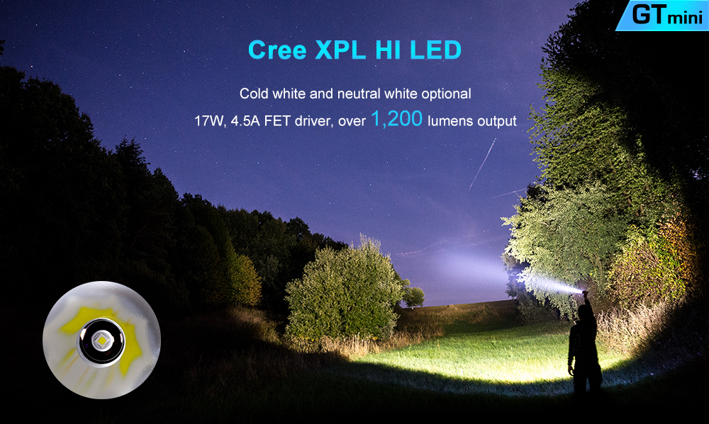 Emitter: Cree XP-L High Intensity, neutral white or cold white