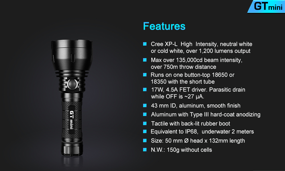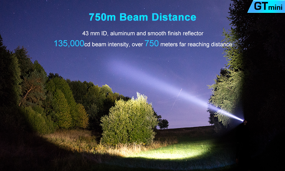 Flux: >1200 lm ; Intensity: >135,000cd (ANSI throw >750 m)