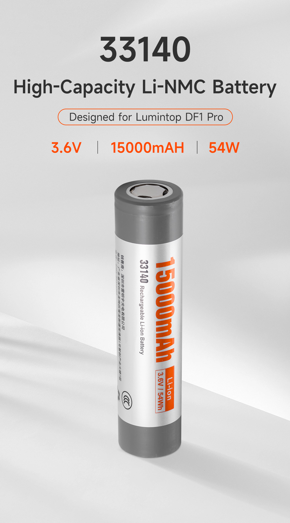 Warming: 33140 is a kind of industrial battery. Do not dismantle the battery. Do not expose the battery to fire or submerge it in water. Identify the positive and negative poles and ensure correct use.