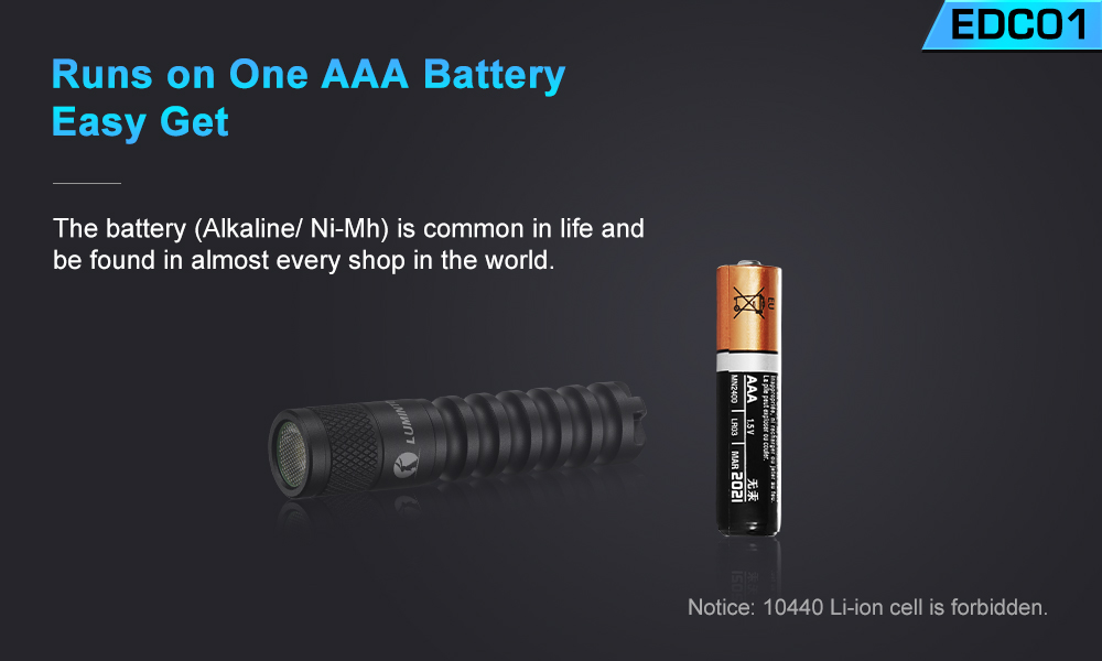 Runs on one always available AAA Ni-Mh or Alkaline battery
