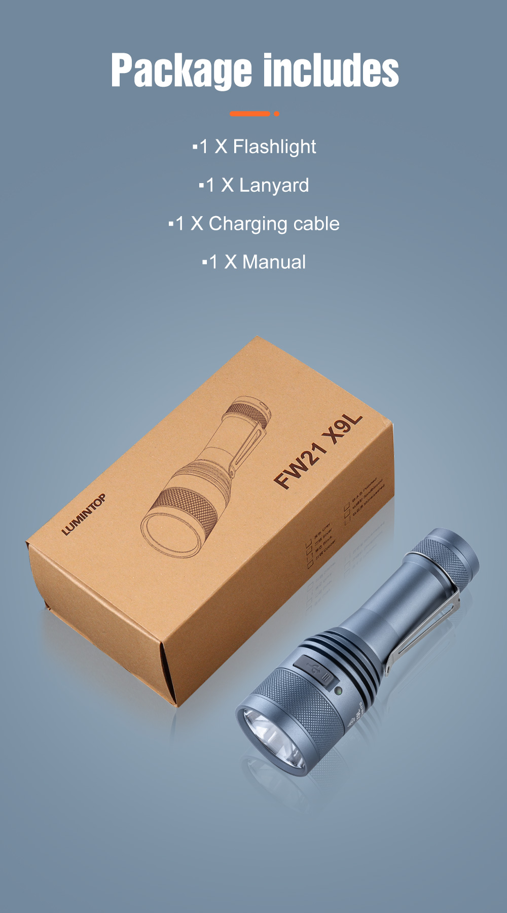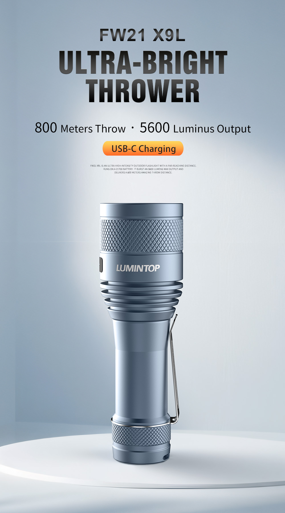 Lumintop FW21 X9L 5600LM 800M 21700 USB-C Rechargeable LED Flashlight