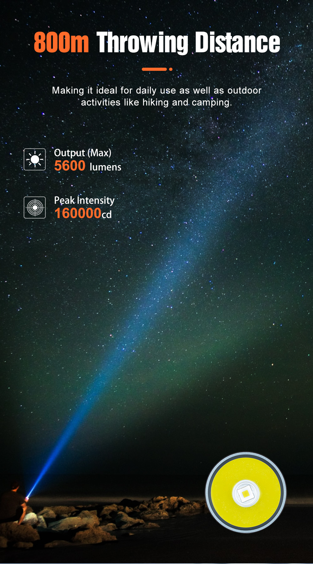 High-performance outdoor flashlight designed for camping, search, and more