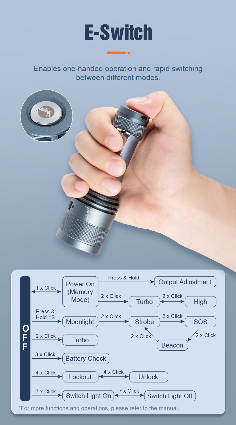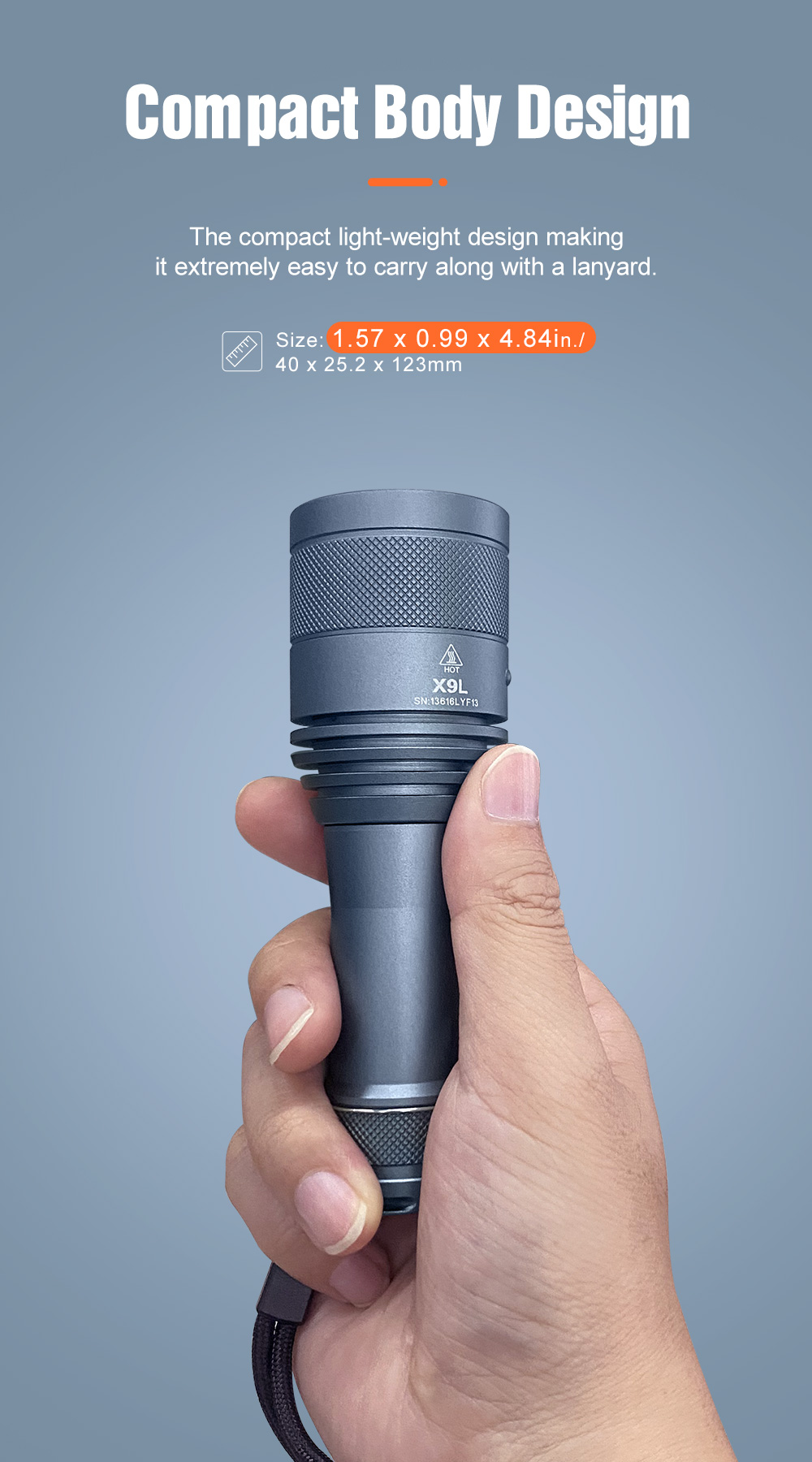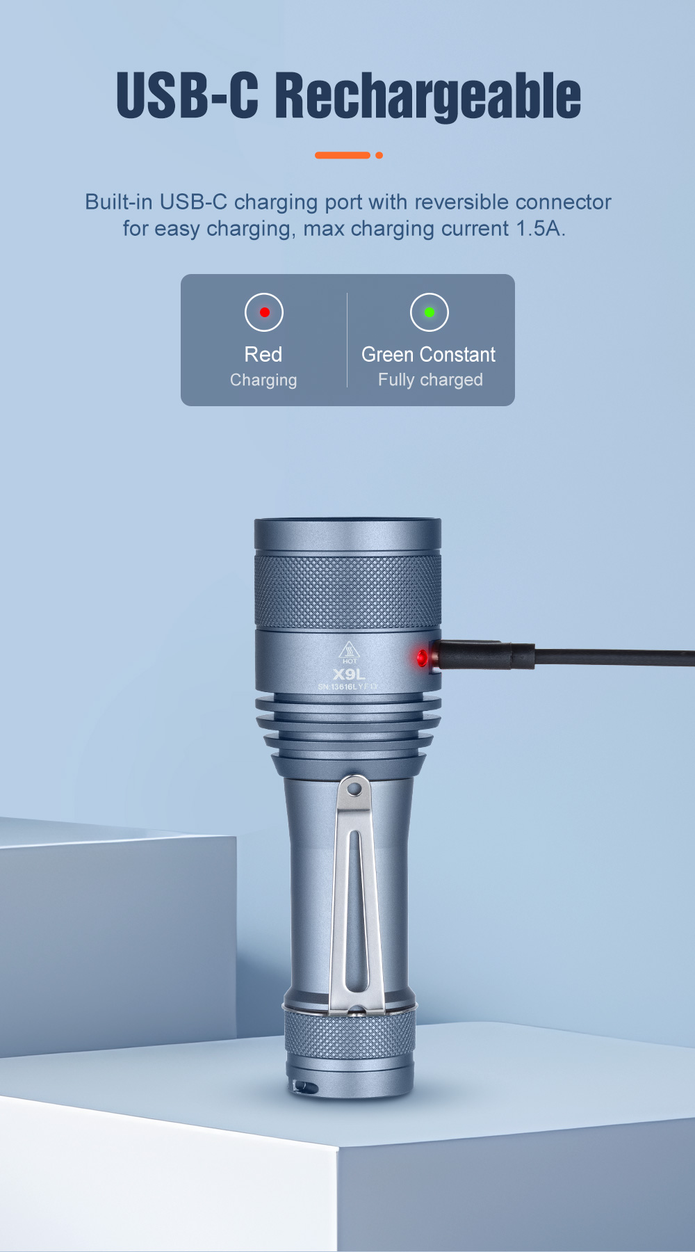 Upgraded with a built-in USB-C charging port and battery indicator, the X9L features a powerful SFT90X LED, delivering up to 5600 lumens and an impressive 800-meter beam distance. Ideal for outdoor adventures, camping, and more.