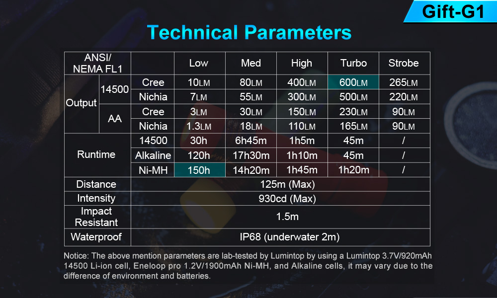 Lumintop Gift-G1 Turbo Glow 600 Lumens EDC Tactical Flashlight