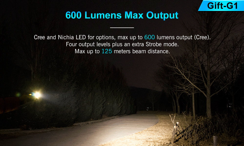 Four output levels plus Strobe with max 600 lumens output