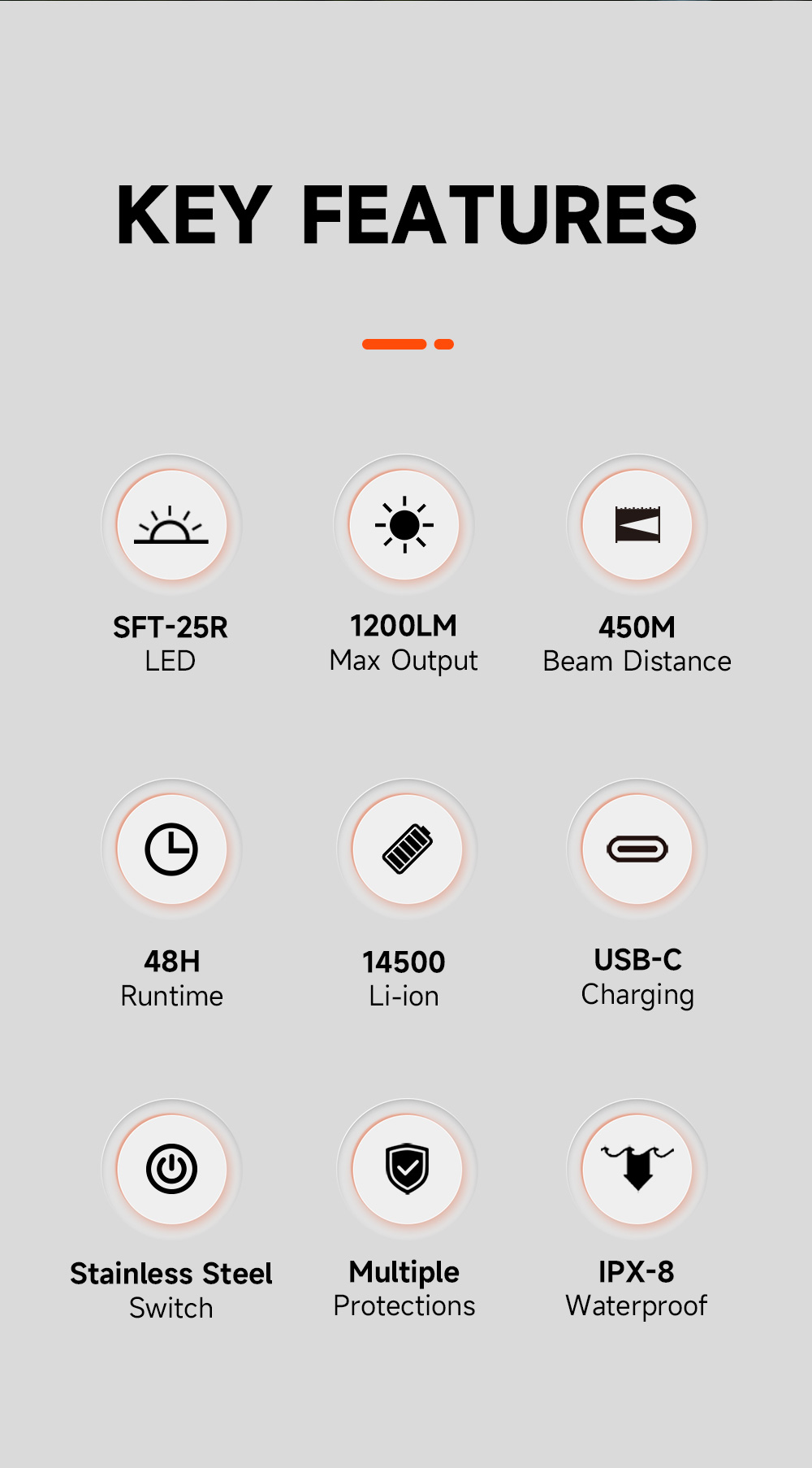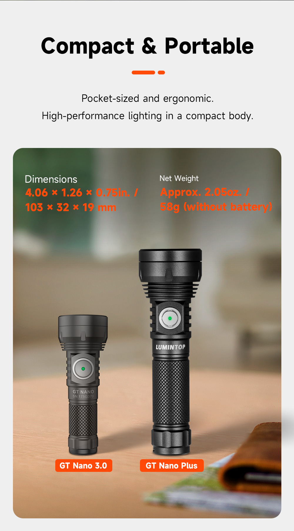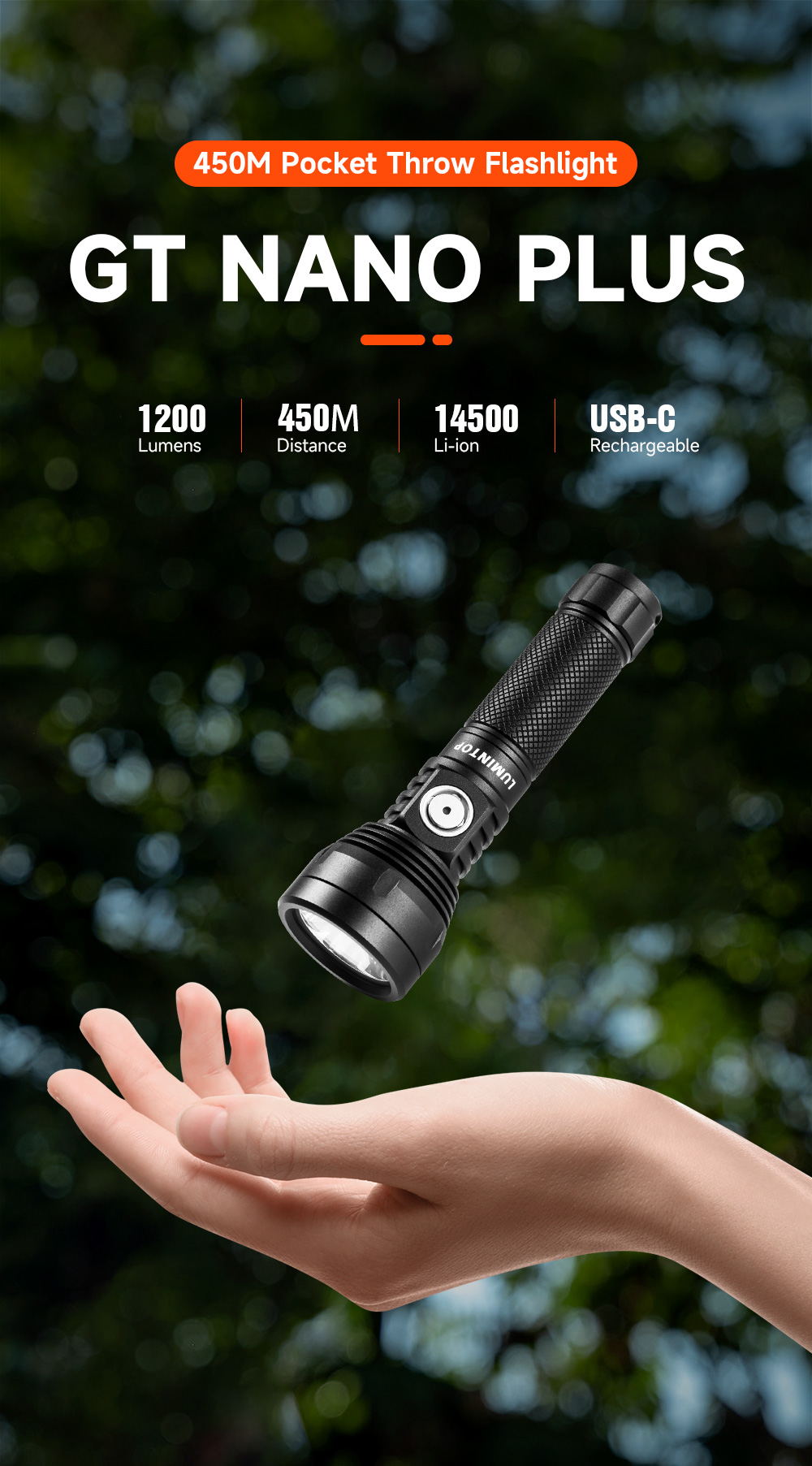 GT NANO PLUS is a compact mini throw flashlight delivering 1200LM and a 450m beam, featuring USB-C charging, flexible battery options, and reliable performance for everyday carry and outdoor use.