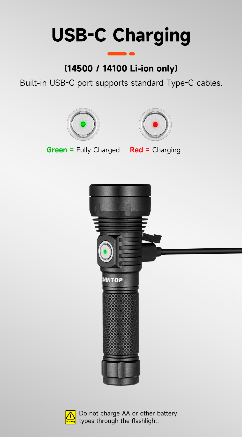 Lumintop GT NANO PLUS 1200 Lumens 450 Meters 14500 USB-C Rechargeable Mini Throw Flashlight