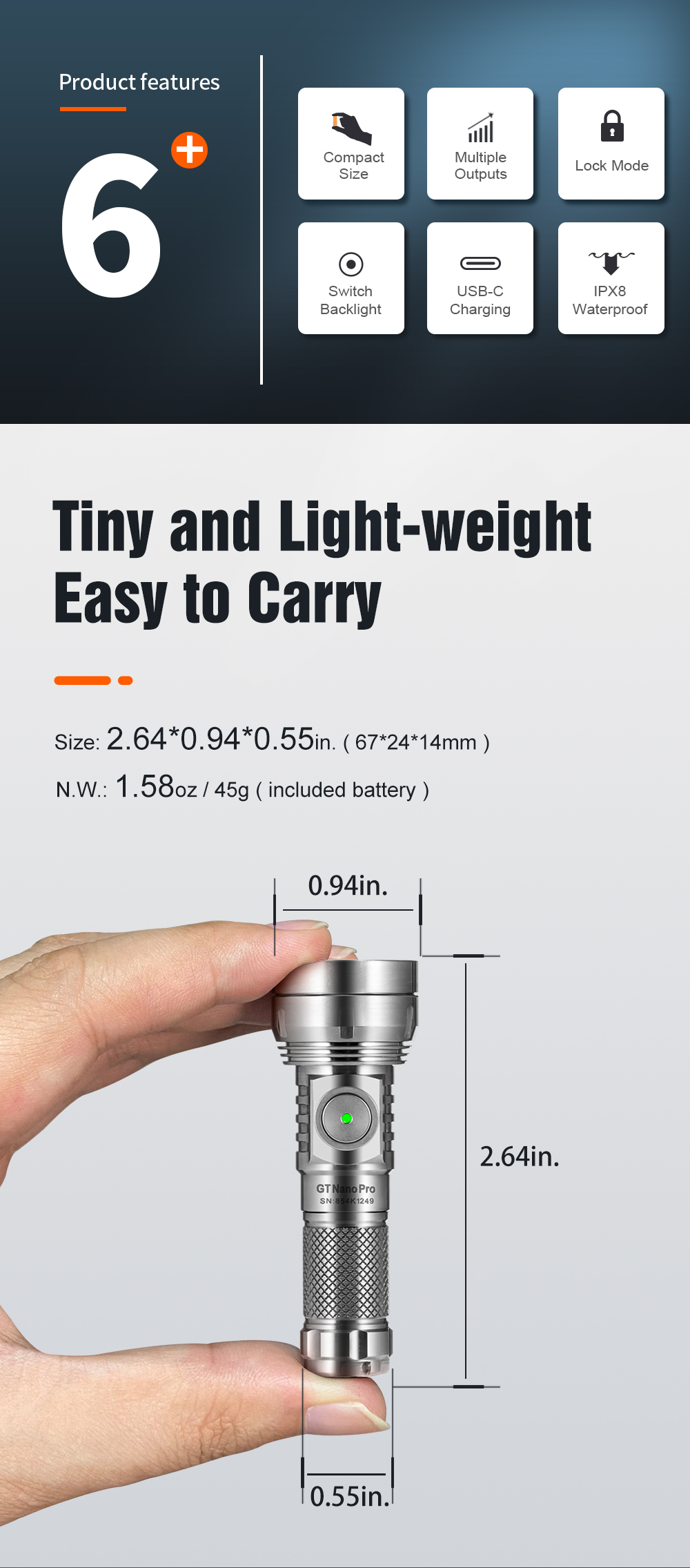 Lumintop GT NANO PLUS 1200 Lumens 450 Meters 14500 USB-C Rechargeable Mini Throw Flashlight