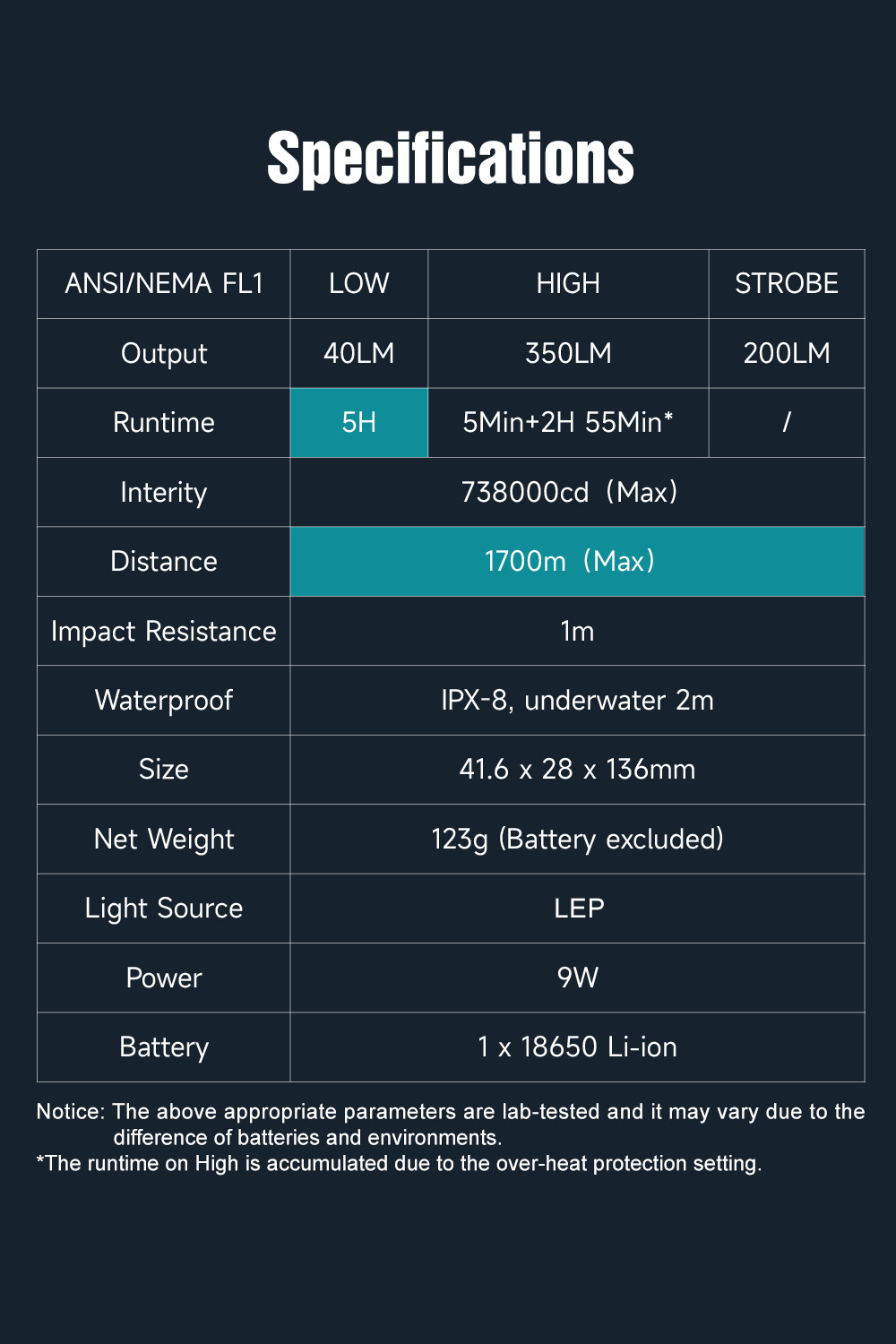 Notice: The above appropriate parameters are lab-tested and it may vary due to the difference of batteries and environments.