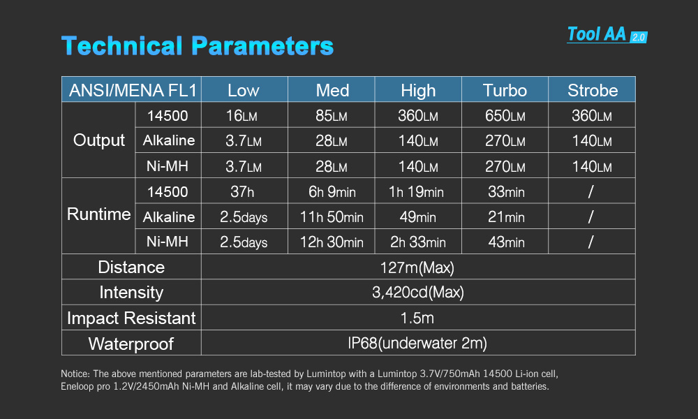 Lumintop Tool AA 2.0 650 Lumens 14500 EDC Flashlight AA Flashlight